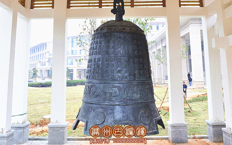 警示鐘,通高2米,下部口徑1.4米,上部鈕高0.3米,總重約1600公斤。襄陽市檢察院定制,警世鐘是本次青銅器訂單當(dāng)中,規(guī)格最大,文字最多,要求最高,用銅最重的器物,他的制作工藝如果運(yùn)用我們的失蠟精密鑄造法,反而達(dá)不到精良效果,因而我們聘請(qǐng)了多位專家指導(dǎo),運(yùn)用最先進(jìn)復(fù)合型精密鑄造工藝,其中使用陶瓷型技術(shù)制作鐘外模,運(yùn)用樹脂砂工藝做鐘內(nèi)心,因而得到了完好鐘體外形,保證了發(fā)音的渾然一體,精細(xì)的紋飾反映了獨(dú)特的地域歷史文化。