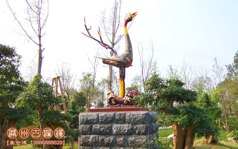 隨州古編鐘真實產(chǎn)品照片——虎座立鳳—青銅彩繪園藝雕塑