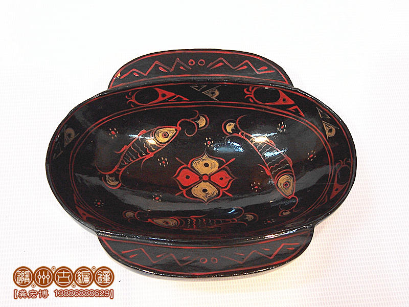 耳杯造型為器口元寶形,小耳,淺腹,平底,往往以盤(pán)承托。耳杯有方形和圓形兩種。自戰(zhàn)國(guó)以來(lái),一直經(jīng)久不衰。主要為飲酒器,還與古代“曲水流觴”的活動(dòng)有關(guān)。據(jù)考,古代習(xí)俗于三月初,為祓除不詳,在水之上游投入盛滿(mǎn)酒的耳杯,任其漂流而下,杯受阻則取而飲之。所以耳杯的耳大如羽扇,既利于漂浮,又便于提取。